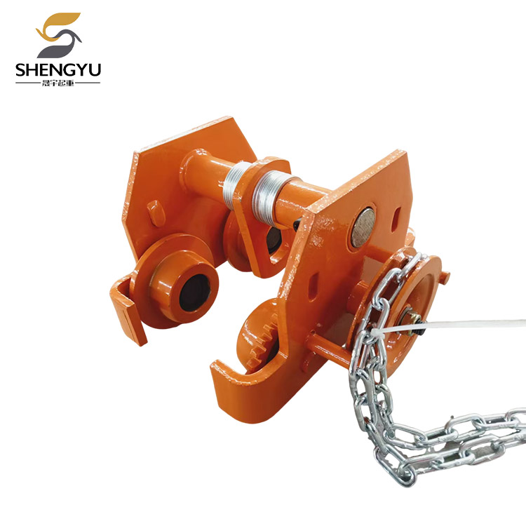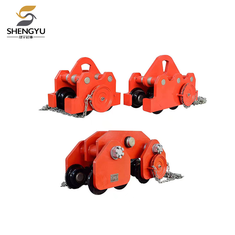 Drevet af en håndkæde bevæger de sig langs den nederste kant af I-bjælkesporet. Når den er udstyret med en kædetalje, fungerer den som et mobilt ophængspunkt til løfteudstyr. På denne måde kan den gearede trolley ikke kun løfte tunge genstande lodret, men også muliggøre venstre og højre bevægelse af tunge genstande.