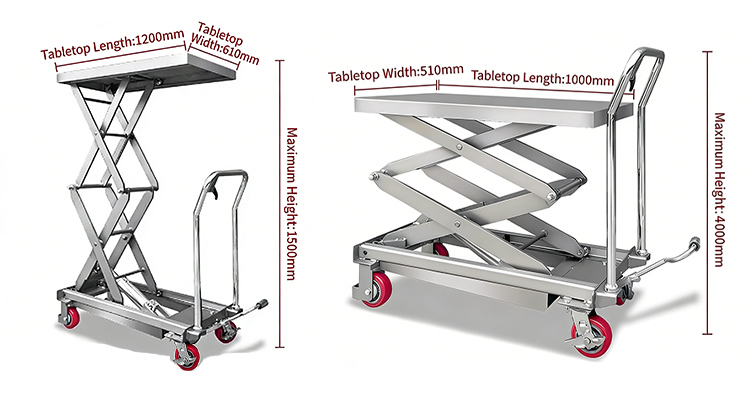 2. Strukturel og funktionel tilpasning: Manuelle eller elektriske/hydrauliske kraftmuligheder er tilgængelige, sammen med tilføjelser såsom foldeværn og omnidirektionelle lydløse hjul. Sammenfoldelige kropsdesigns er tilgængelige til trange rum, og eksplosionssikre designs kan tilføjes til farlige miljøer.